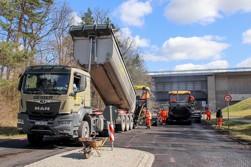 Mit dem Beginn der Asphaltsaison zeigt die Pusch Bau GmbH & Co. KG erneut ihre Leistungsfähigkeit im modernen Straßenbau. Für den Anschluss an den Neubau der Brücke an der St 2239 bei Neuses wurde eine hochwertige Asphaltdeckschicht eingebaut.
